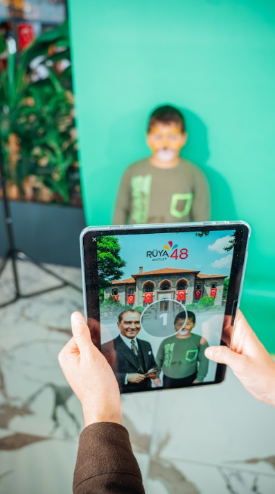 Atatürk Temalı Fotoğraf Baskısı: Katılımcılar, kurulan özel alanda günün anısına fotoğraflar çektirerek anılarını ölümsüzleştirdi.